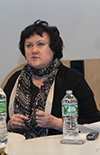 Nadezhda Azhgikhina: Brava! What to say? I should confess that a week ago, Carol Ueland and I developed this roundtable for our first meetings of American Slavists and Russian literary critics and journalists in the field of communication during perestroika and after it. And we dedicated this gathering to professor Galina Andreyevna Belaya, who played extraordinary roles on both sides. And, fortunately, one man came to our discussion, my university mate and general director of NTV America Evgeny Piskunov. Galina Andreyevna was our professor, and played an enormous role in arranging meetings, gatherings, and studies for Russian and American professionals. And, Catherine Nepomnyashchy, everybody remembers her, a fantastic person, my close friend, and, like Galina Andreyevna, she also personally dedicated to this process. And she was the first literary scholar who was the Chair of Harriman institute. During this roundtable we thought, of course, we should go on. Of course, we should not just fix in our memories those emotional and fantastic fruitful days, but probably to try arrange this cooperation today and to do our best to make a difference again and to keep our dream and to make it real. And Carol gave a fantastic talk in Russia, I couldn't do it in English.